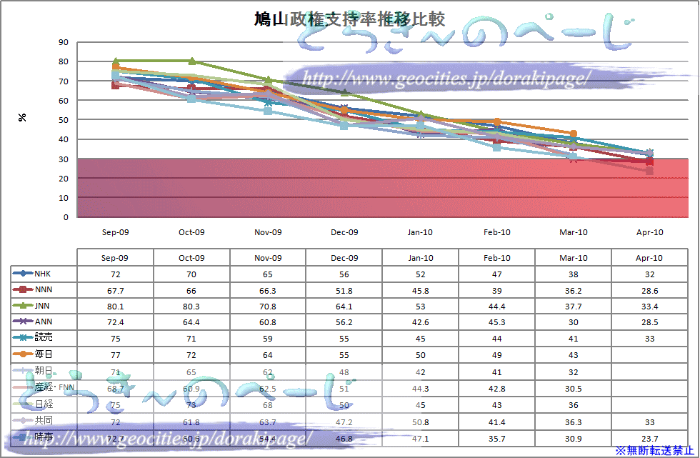 もの申す!NO14 2010年4月の世論調査鳩山政権支持率グラフ